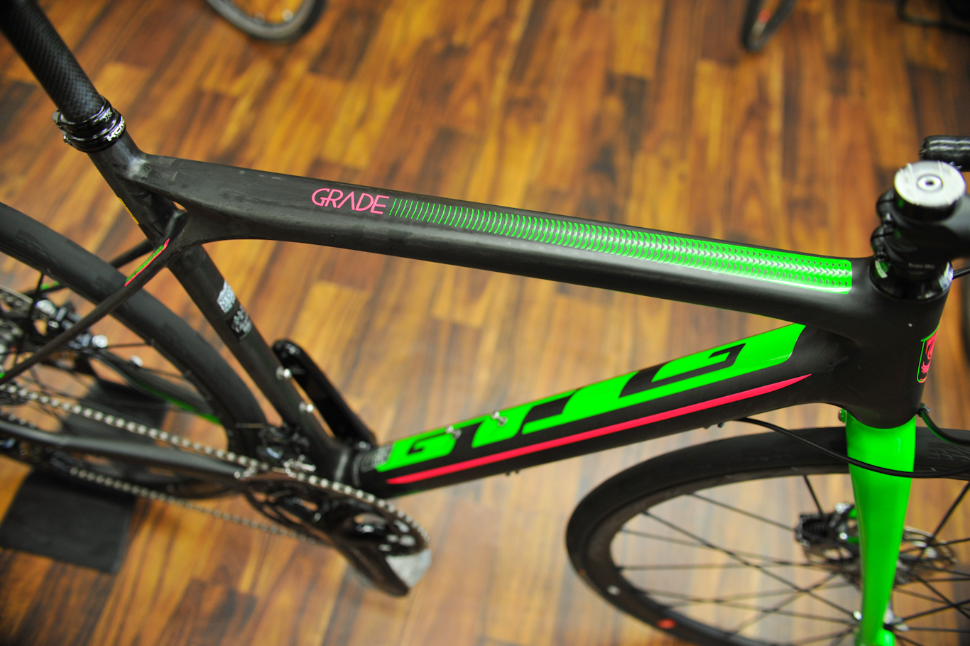 今回はMTB黎明期から支えるGTからグラベルロード「グレード カーボン」のオーバーホールと楕円チェーンリングやビッグプーリーなどの回転系を重点を置いたカスタムをさせていただきました。