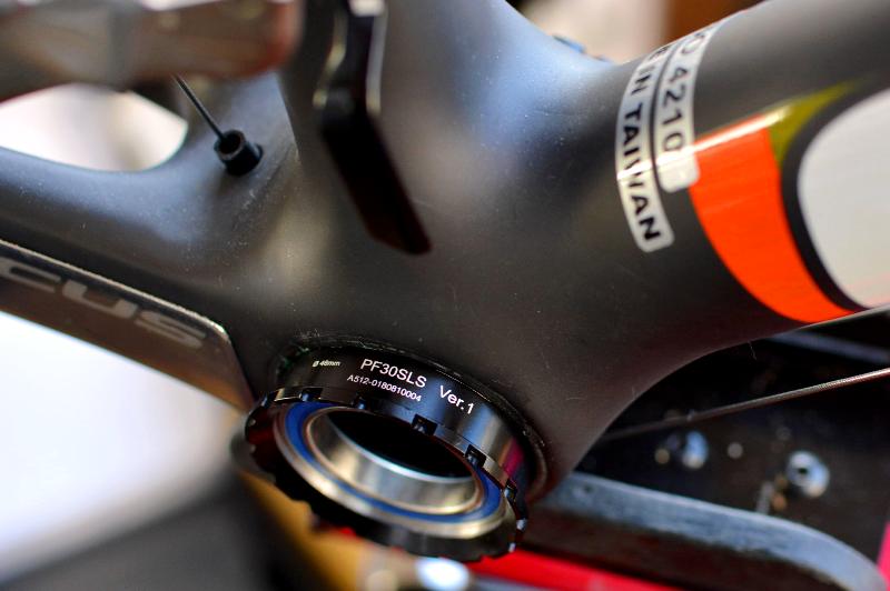 IZALCO MAX のBB規格はPF30。SRAM REDのクランクもそれに対応したBB30/PF30用クランクです。このクランクに対応するウィッシュボーンのセラミックBBは「PF30SLS」という型番。例えばREDのクランクがGXP仕様であれば用意するセラミックBBの型番も変わってきます。やっぱりBBの組み合わせは複雑ですね・・・。