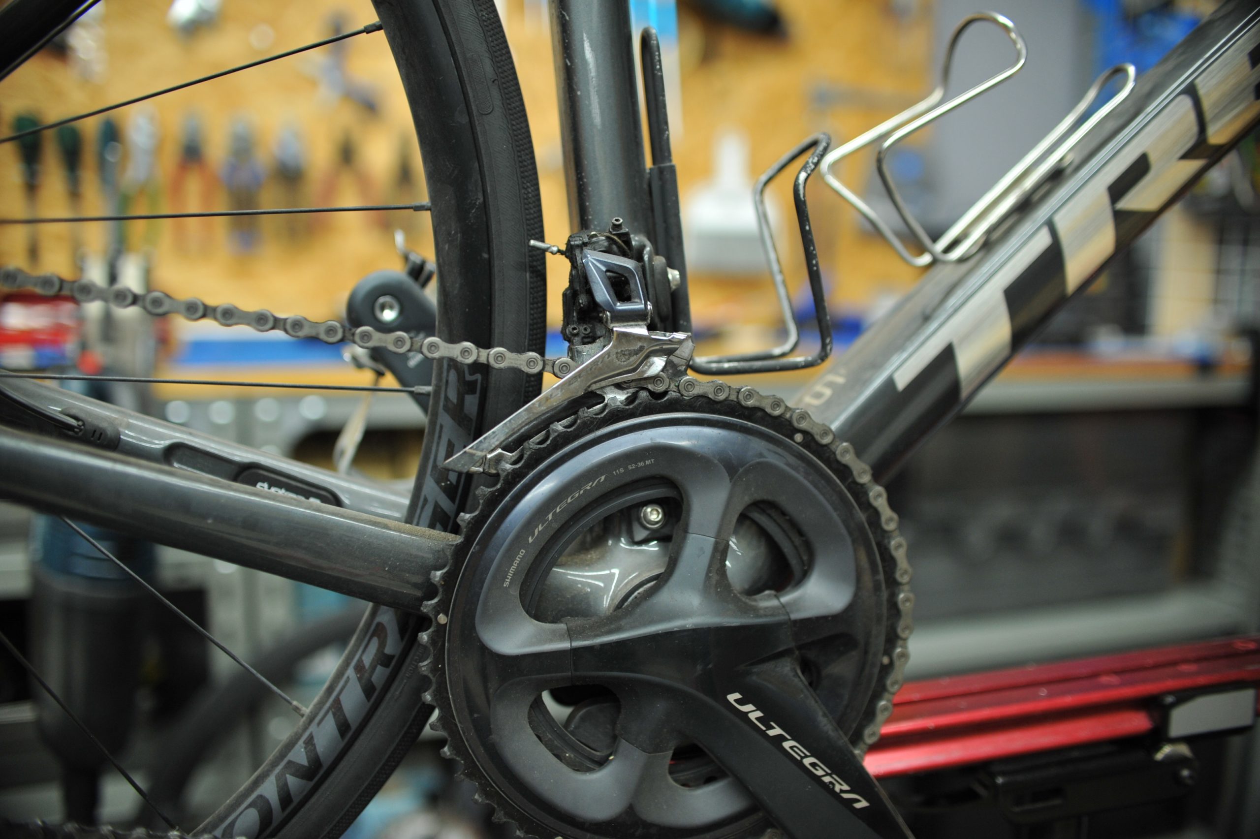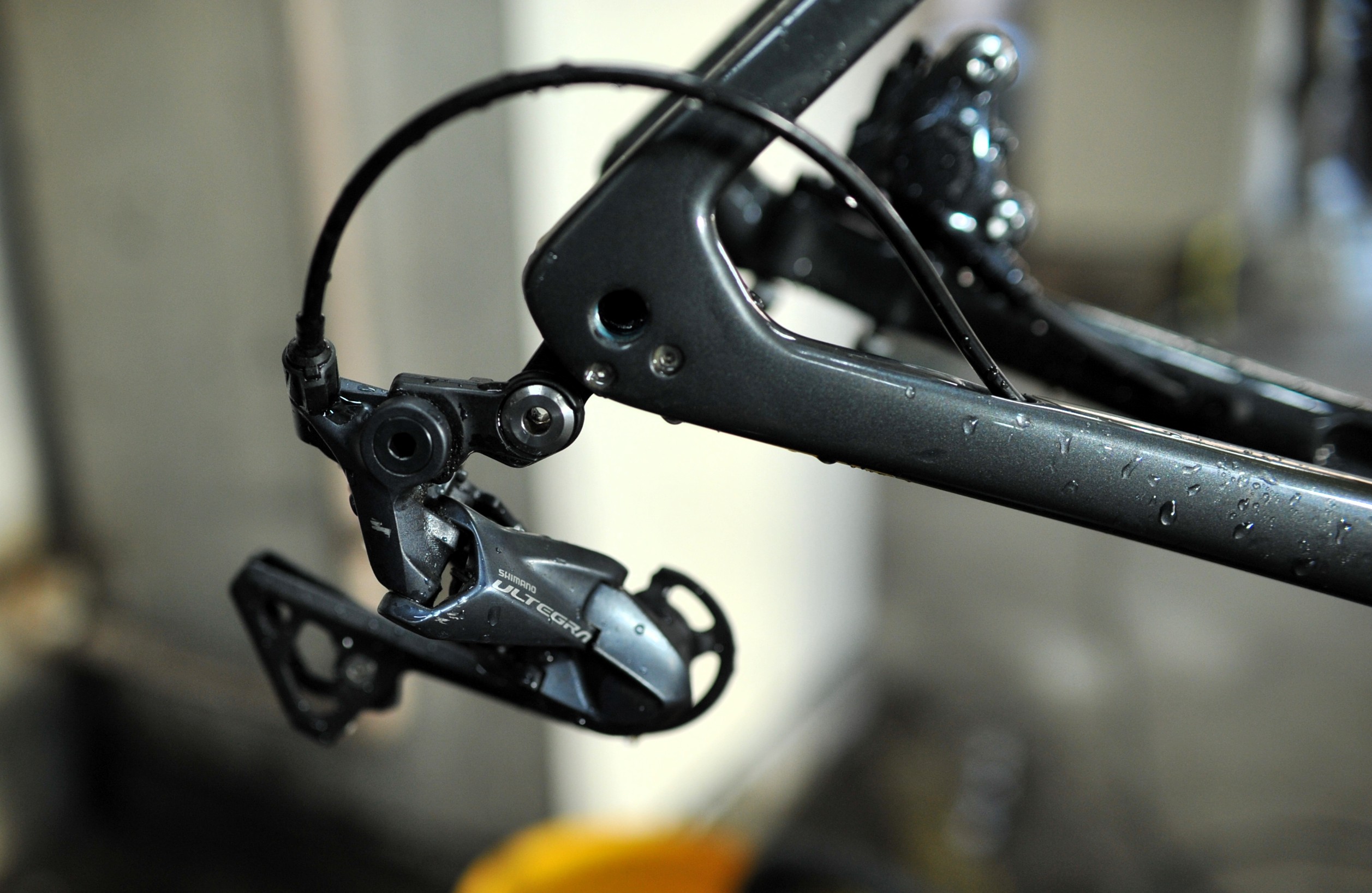 トレック・エモンダ SL6のオーバーホールをスタート。まずは軽くパーツを外して、洗車から入ります。