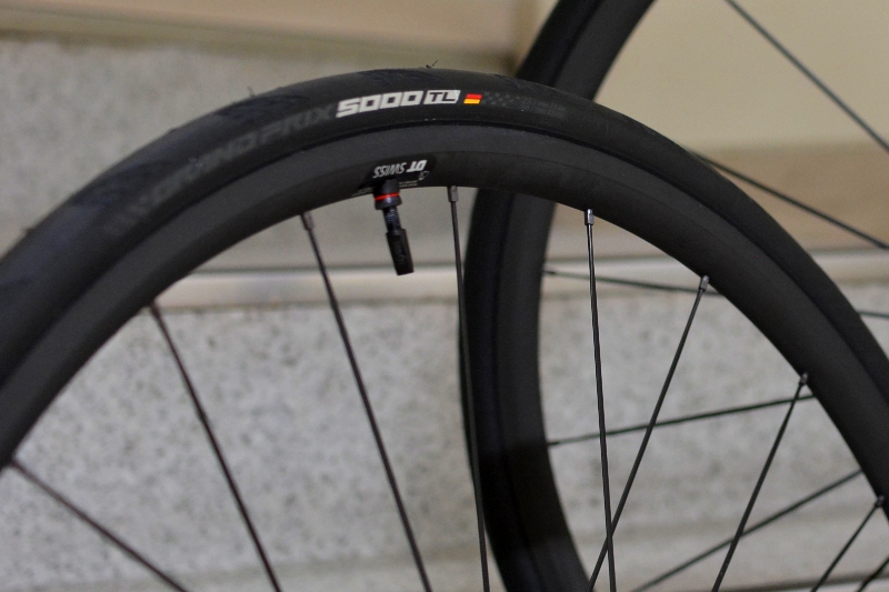 せっかくDT SWISSのホイールを入れるならタイヤもチューブレスに。コンチネンタルグランプリ5000TLです。私も好んで使っていますが、クリンチャーも含めてこのグランプリ5000は非常に広く支持されているタイヤです。